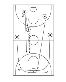 Nekateri trenerji določijo visoke igralce, ki so lahko tudi dobri podajalci, da vedno izvajajo žogo po prejetem košu. Kadar visoki igralci hitro stečejo v protinapad, odprejo branilcem prostor v sredini za hiter prenos žoge.
