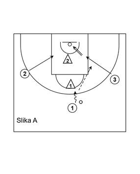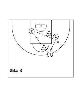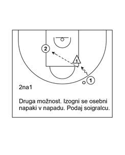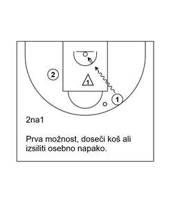 V takšni situaciji je pomembno da je igralec z žogo agresiven in želi doseči koš ali izsiliti osebno napako. Igrala morata imeti primerno razdaljo, da oteži delo obrambnemu igralcu. Prav tako je pomembno, da sta z igralcem nekje v širini rakete ali kakšen korak širše. V primeru da obrambni igralec želi izsiliti osebno napako v napadu, se mora igralec z žogo pravočasno zaustaviti in podati prostemu soigralcu.